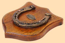 Медальон для подковы изготовлен из бука, покрашен под дуб и покрыт матовым лаком