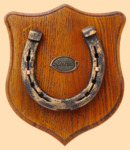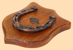 Медальон для подковы изготовлен из бука, покрашен под дуб и покрыт матовым лаком