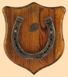 Медальон для подковы изготовлен из бука, покрашен под дуб и покрыт матовым лаком