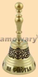Каталог » Колокольчики » Колокольчики Валдайские » Колокольчик №4 На счастье (золотой, с гравировкой, с металлической ручкой)