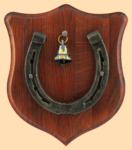 Размер медальона 19 на 22 см Медальон для подковы изготовлен из бука, покрашен под вишню и покрыт матовым лаком Размер подковы 13 на 13 см Подкова штампованная, покрыта патиной с золотом В центре медальона закреплен Валдайский колокольчик с чернью и гравировкой "На счастье и Удачу" Высота колокольчика 3,5 см, диаметр 3 см, материал латунь Вес подковы - 900 гр. Производитель Россия