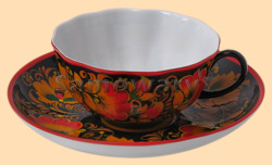 Каталог » Хохлома » УЦЕНКА - Хохлома » (УЦ) Чайная пара из керамики Хохлома Маки (низкая, 200 мл)