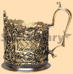 Диаметр основания - 7,5 см, высота подстаканника (без стакана) - 9 см. Материал - латунь (литье) Покрытие - никель (чернение) Данный подстаканник дополнительно можно покрыть серебром и позолотить некоторые его элементы. Это увеличит стоимость подстаканника на несколько тысяч рублей, более подробную информацию по срокам и ценам вы можете уточнить у наших менеджеров. Производитель Россия