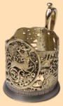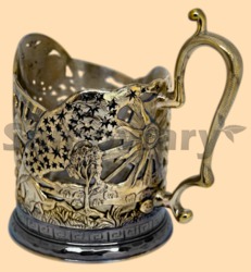 Диаметр основания - 7,5 см, высота подстаканника (без стакана) - 9 см. Материал - латунь (литье) Покрытие - никель (чернение) Данный подстаканник дополнительно можно покрыть серебром и позолотить некоторые его элементы. Это увеличит стоимость подстаканника на несколько тысяч рублей, более подробную информацию по срокам и ценам вы можете уточнить у наших менеджеров. Производитель Россия