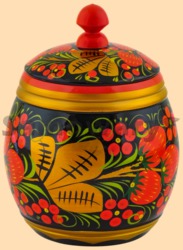 Высота 15,5 смДиаметр 11 смМатериал деревоХохлома, ручная росписьПроизводитель Россия