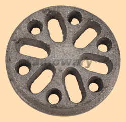 Диаметр колосника для самовара 95 мм Толщина колосника для самовара 13 мм Колосник предназначен для того, чтобы не прогоревшие части дров не падали в зольник самовар, а зола наоборот попадал в зольник. При этом колосник испытывает высокие температурные нагрузки и часто прогорает в старых самоварах. Поэтому часто требуется его своевременная замена. Все колосники отличаются диаметром, т.е. исходя из диаметра вашей самоварной трубы, нужно подбирать и колосник. Наш магазин самоваров предлагает вам колосники для самоваров разного диаметра Материал колосника для самовара - чугун Вес 348 гр. Производитель Россия