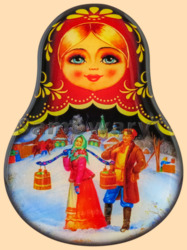 Каталог » Магниты » Магниты в форме матрёшки » Магнит матрёшка Девица с коромыслом