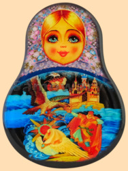 Каталог » Магниты » Магниты в форме матрёшки » Магнит матрёшка Сказка о царе Салтане
