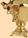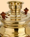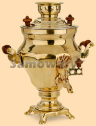 Самовар: - объем 3 литра - высота самовара 36 см - ширина самовара по ручки 31 см - материал: полированная латунь (жёлтый цвет) - на лицевой поверхности самовара размещён герб Российской Федерации, материал герба - латунь - ручки выполнены из дерева и покрашены коричневой морилкой - мощность ТЭНа 1 кВт, время закипания 15-20 минут - вес самовара 2,3 кг - производитель Россия (Тула)
