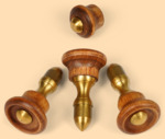 - 3 стойки (хватка) с деревянными ручками диаметром 25 мм, латунными болтами (длина 40 мм, резьба М5), латунными втулками (проставками) высотой 16 мм и латунными малинками в виде "пулек" на конце