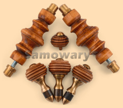 - 3 стойки (хватка) с деревянными ручками диаметром 25 мм, латунными болтами (длина 40 мм, резьба М5), латунными втулками (проставками) высотой 16 мм и латунными малинками в виде "пулек" на конце