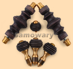 - 3 стойки (хватка) с деревянными ручками диаметром 25 мм, латунными болтами (длина 40 мм, резьба М5), латунными втулками (проставками) высотой 16 мм и латунными малинками в виде "пулек" на конце