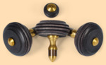 - 3 стойки (хватка) с деревянными ручками диаметром 35 мм, латунными болтами (длина 40 мм, резьба М5), латунными втулками (проставками) высотой 16 мм и латунными малинками в виде "пулек" на конце