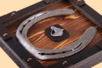На медальоне закреплена НОШЕННАЯ ПОДКОВА (на ней есть следы износа и царапины). Считается что только ношенная подкова приносит удачу!