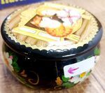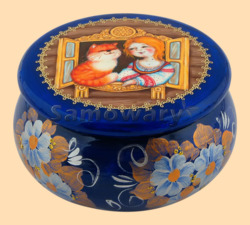 Дефект - трещина на шкатулке (подробнее на фото) Диаметр 11 см Высота 6 см Ручная роспись Материал дерево, сама шкатулка чёрного цвета Производитель Россия