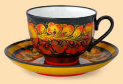 Диаметр чашки 6 см Высота чашки 7,5 см Диаметр блюдца 12 см Объем 200 мл Материал керамика Хохлома, ручная роспись Производитель Россия