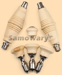 Полный комплект никелированных ручек для жарового (угольного, дровяного) самовара, в том числе для различных антикварных самоваров и электрических тульских самоваров В комплект входят: - 2 деревянные боковые ручки на самовар длиной 65 мм, стальные стержни (длина 85 мм, резьба М5) и 4 никелированные латунные малинки, покрытие которых не боится воды, т.е. не окисляется - 3 стойки (хватка) с деревянными ручками диаметром 25 мм, никелированными латунными болтами (длина 40 мм, резьба М5), никелированными латунными втулками (проставками) высотой 16 мм и никелированными латунными малинками в виде "пулек" на конце, покрытие которых (имеется ввиду болт, втулка и малинка) также не боится воды - 1 деревянная ручка на краник самовара диаметром 20 мм и никелированным латунным болтом для крепления к самовару (длина 20 мм, резьба М4) Все ручки изготовлены из дерева (липа) Древесина липы белая с лёгким розоватым или красноватым оттенком, мягкая. Прекрасно обрабатывается, легко режется и строгается, особенно подходит для резьбы по дереву Стойки, малинки, болты, гайки, проставки для стоек и другая фурнитура для данного комплекта изготавливается только из латуни с покрытием снаружи НИКЕЛЕМ, что предотвращает окисление латунных элементов и их потемнение. Такие, покрытые никелем элементы, надёжно защищены от внешней среды и не нуждаются в полировке и чистке после эксплуатации самовара. Вес данного комплекта ручек - 150 гр. Производитель Россия