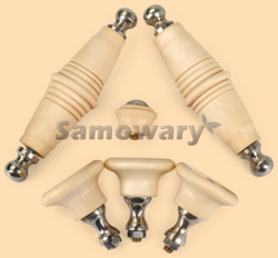 Полный комплект ручек для жарового (угольного, дровяного) самовара, в том числе для различных антикварных самоваров и электрических тульских самоваров В комплект входят: - 2 деревянные боковые ручки на самовар длиной 75 мм, стальные стержни (длина 95 мм, резьба М5) и 4 латунные малинки - 3 стойки (хватка) с деревянными ручками диаметром 35 мм, латунными болтами (длина 40 мм, резьба М5), латунными втулками (проставками) высотой 16 мм и латунными гайками на конце - 1 деревянная ручка на краник самовара диаметром 20 мм и латунным болтом для крепления к самовару (длина 20 мм, резьба М5) Все ручки изготовлены из дерева (липа) Древесина липы белая с лёгким розоватым или красноватым оттенком, мягкая. Прекрасно обрабатывается, легко режется и строгается, особенно подходит для резьбы по дереву Стойки, малинки, болты, гайки, проставки для стоек и другая фурнитура для данного комплекта изготавливается только из латуни Вес 150 гр. Производитель Россия