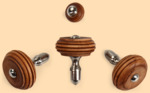 - 3 стойки (хватка) с деревянными ручками диаметром 35 мм, латунными болтами (длина 40 мм, резьба М5), латунными втулками (проставками) высотой 16 мм и латунными малинками в виде "пулек" на конце