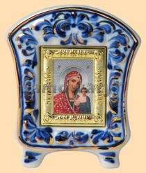 Каталог » Гжель » Киоты, лики, образы, плакетки Гжель » Киот Гжель Казанская Божья Матерь позолоченный №5