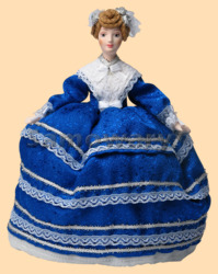 Кукла на чайник для самовара Барышня (фарфор, синяя) (арт. 56155)