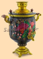 Самовар: - объем 10 литров - высота самовара 49 см - ширина самовара по ручки 37 см - материал: латунь - расписан вручную, покрыт лаком - мощность ТЭНа 1 кВт, время закипания 30 минут - вес самовара 4,1 кг Производитель Россия (Тула)