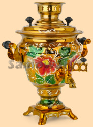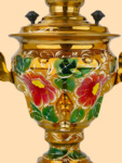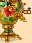 Самовар: - объем 2 литра - высота самовара 32 см - ширина самовара по ручки 30 см - материал: латунь - расписан вручную, покрыт лаком - мощность ТЭНа 1 кВт, время закипания 18-20 минут - вес самовара 2,3 кг - производитель Россия (Тула)